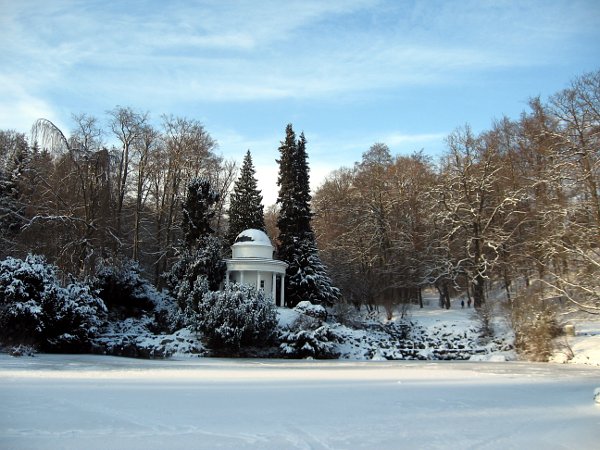 5. Januar 2010: Der Apollotempel am Fontänenteich im Winterkleid.